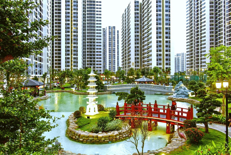 Nếu bạn là người yêu thích không gian kiến trúc Nhật Bản thì chắc chắn không nên bỏ qua khu vườn Nhật Bản và cổng Origami tại Vinhomes Grand Park. Tại đây bạn có thể chiêm ngưỡng cảnh sắc không gian Nhật Bản thu nhỏ với cây Tùng, chòi gỗ, cổng Torii, cầu đá – cầu đỏ, hồ cá Koi với diện tích 8.000m2 lớn nhất Tp.HCM.