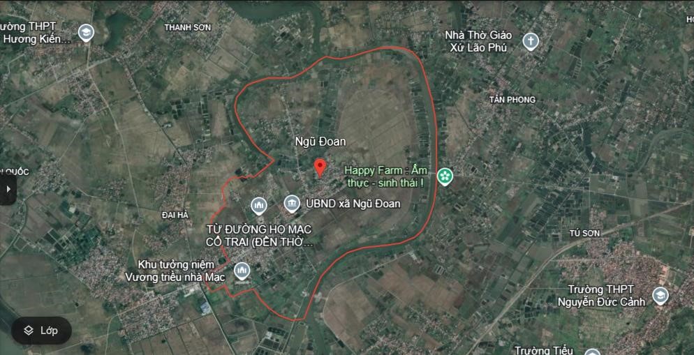 Xã Ngũ Đoan là một xã nằm về phía Nam huyện Kiến Thụy, thành phố Hải Phòng (Nguồn: Google Earth)